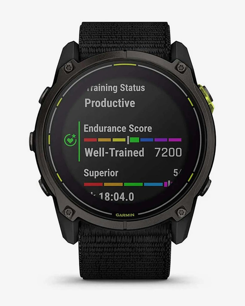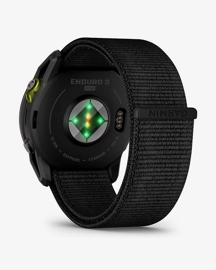 Garmin Enduro 3 Sapphire Solar è uno smartwatch GPS ad alte prestazioni, progettato per le sfide più impegnative, con un design leggero e adatto all'uso intensivo. Affronta il mondo con un'incredibile durata della batteria, inclusa la ricarica solare che dura fino a 320 ore in modalità GPS (3 ore al giorno in condizioni di 50.000 lux). Illumina l'oscurità con la torcia LED integrata e goditi il comfort sulle lunghe distanze grazie al leggero cinturino in nylon UltraFit. Le mappe TopoActive precaricate sono ottimizzate per mantenerti in pista durante le tue avventure all'aria aperta. Per gli atleti di ultra-endurance pronti a conquistare i loro sogni più sfrenati, Enduro 3 è lo smartwatch che fa per te.