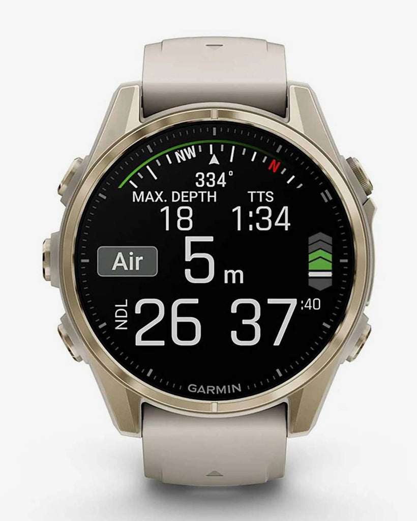 Il fēnix 8 è costruito per durare, offrendo una gamma di caratteristiche tra cui un vetro zaffiro antigraffio, lunetta e fondello in titanio. Grazie ai suoi pulsanti induttivi, è adatto anche per immersioni fino a una profondità di 40 metri. Inoltre, l'orologio è stato sottoposto a rigorosi test di resistenza termica, resistenza agli urti e impermeabilità.
