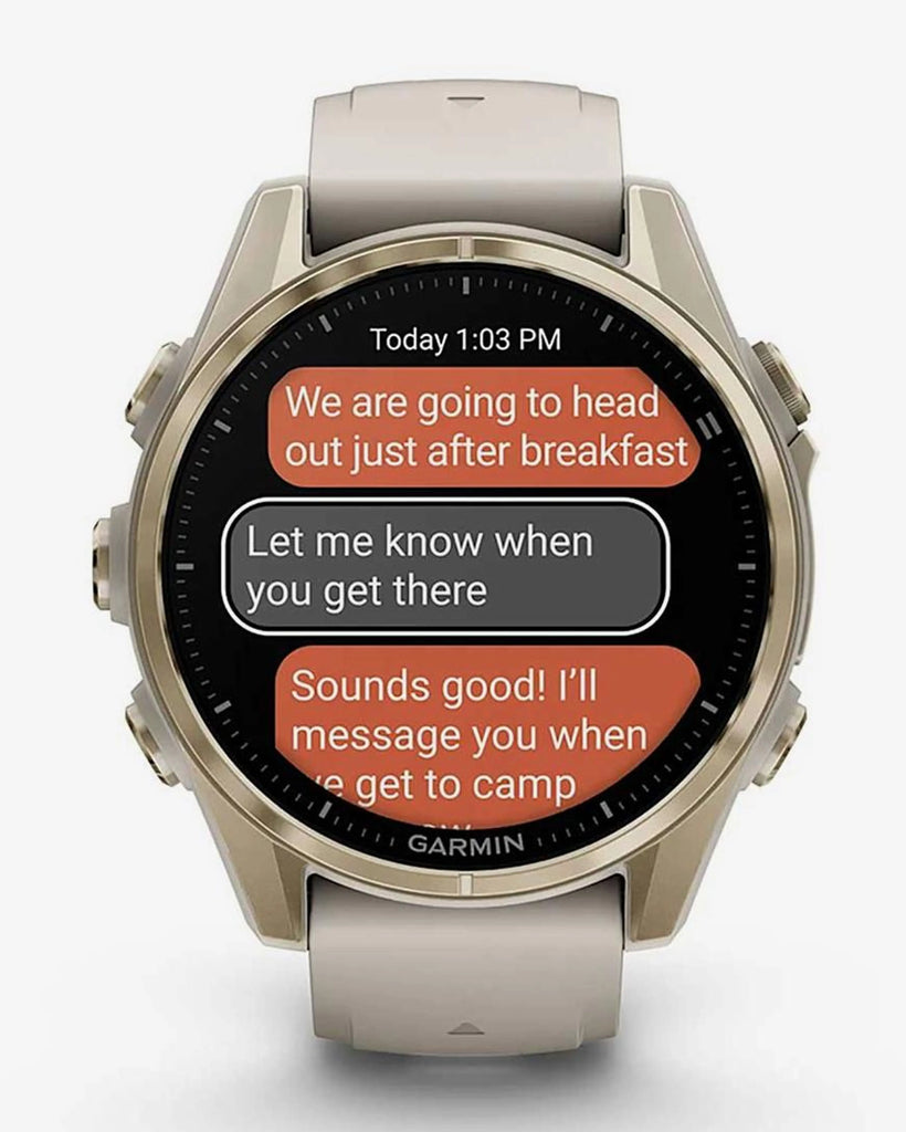 Se associato al tuo inReach compatibile, puoi comunicare tramite messaggistica bidirezionale nell'app Garmin Messenger e, se necessario, puoi anche attivare un SOS dal tuo polso.