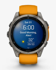 Il fēnix 8 offre ora opzioni con un brillante display AMOLED, così le informazioni dettagliate e le mappe sono facili da leggere a colpo d'occhio, garantendo comunque un'ottima durata della batteria, fino a 29 giorni in modalità smartwatch sul modello da 51 mm.