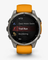 Il fēnix 8 è costruito per durare, offrendo una gamma di caratteristiche tra cui un vetro zaffiro antigraffio, lunetta e fondello in titanio. Grazie ai suoi pulsanti induttivi, è adatto anche per immersioni fino a una profondità di 40 metri. Inoltre, l'orologio è stato sottoposto a rigorosi test di resistenza termica, resistenza agli urti e impermeabilità.