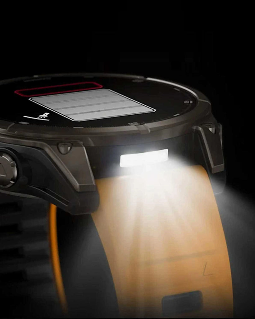 Abbinalo al tuo smartphone per effettuare chiamate dal polso utilizzando l'altoparlante e il microfono integrati. È inoltre dotato di una potente torcia a LED con luminosità regolabile, inclusa una luce rossa di sicurezza che offre una maggiore visibilità durante l'allenamento al buio e può illuminare comodamente il percorso quando necessario. Goditi lunghe avventure fuori dalla rete elettrica grazie alla batteria a lunga durata.