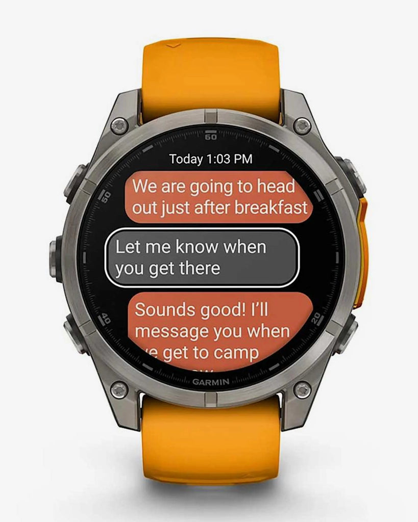 Se associato al tuo inReach compatibile, puoi comunicare tramite messaggistica bidirezionale nell'app Garmin Messenger e, se necessario, puoi anche attivare un SOS dal tuo polso.
